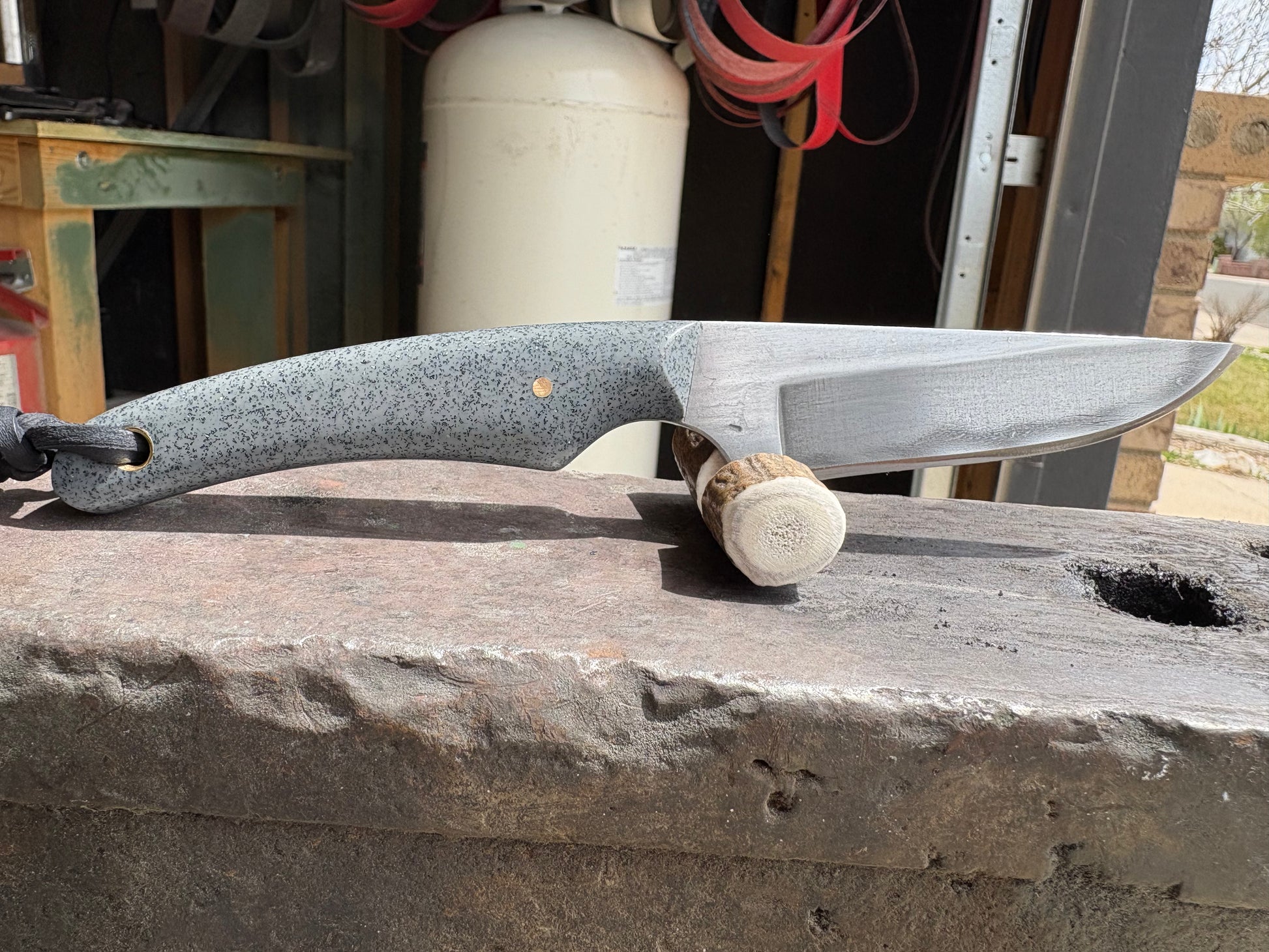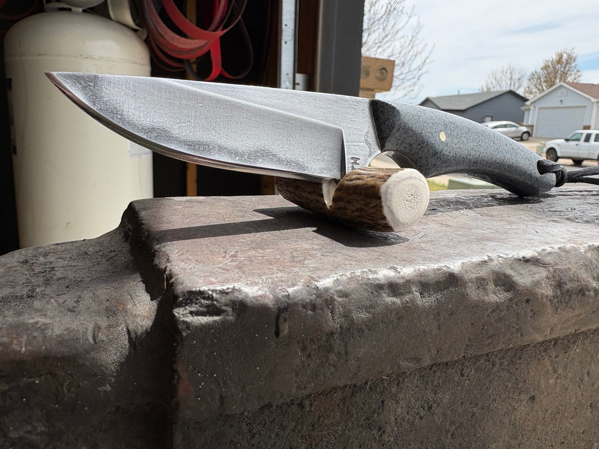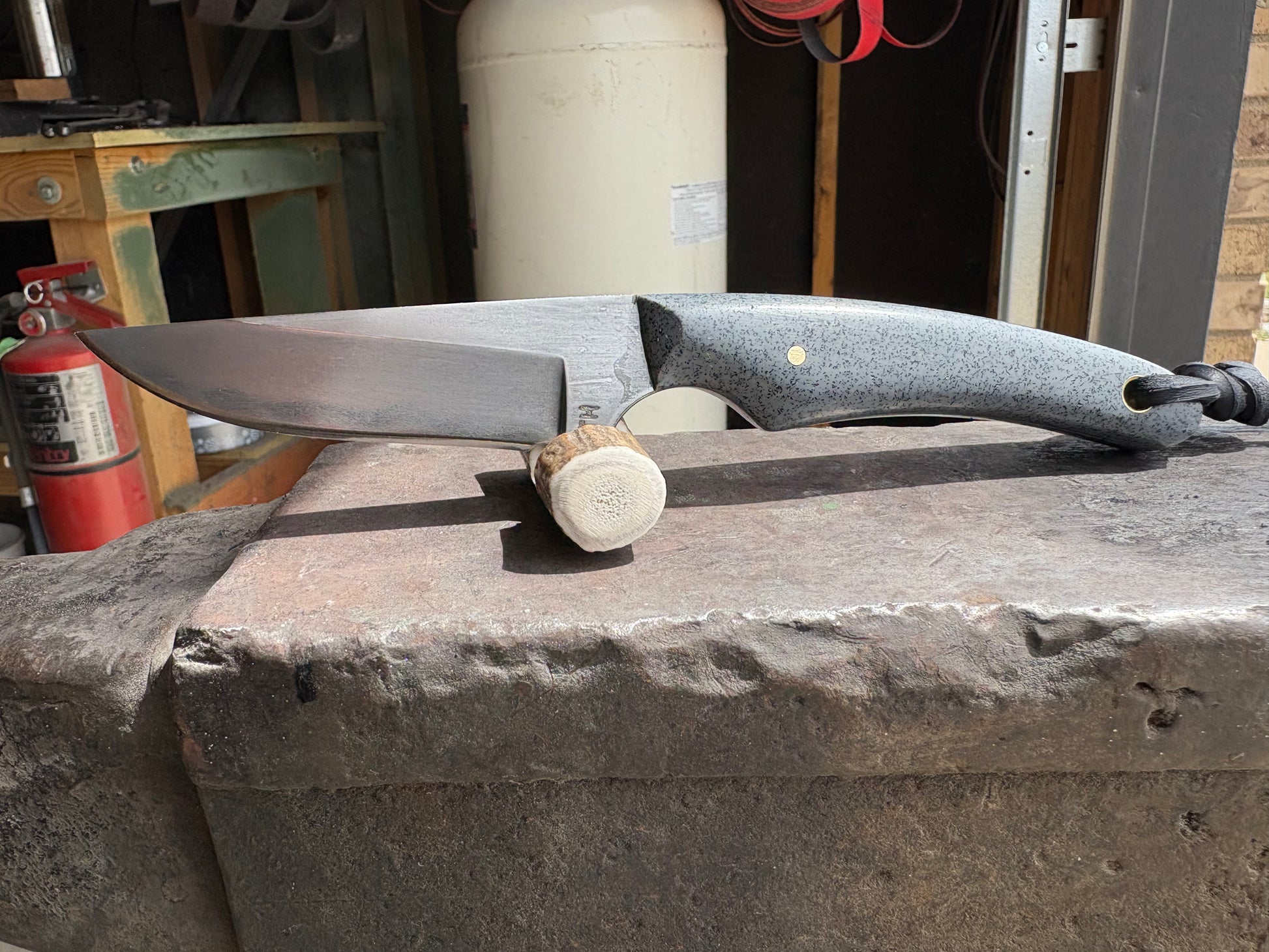 Crafted for both durability and performance, this knife features a clip point blade made from 1095 high carbon steel and a Hamon line. The precision hollow grind ensures a sharp, long-lasting edge, making it ideal for various cutting tasks.