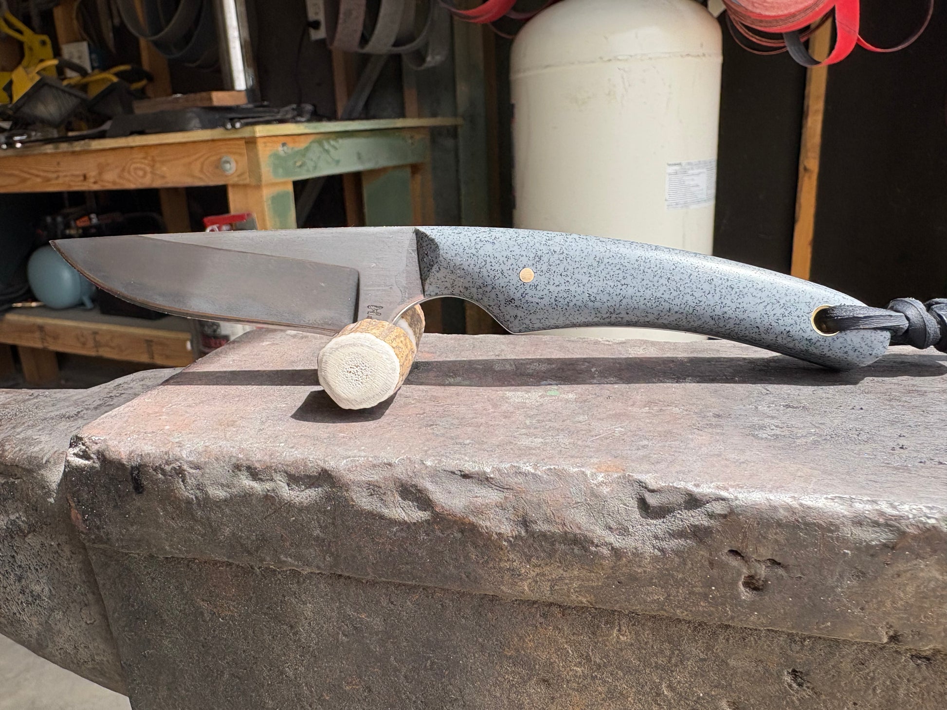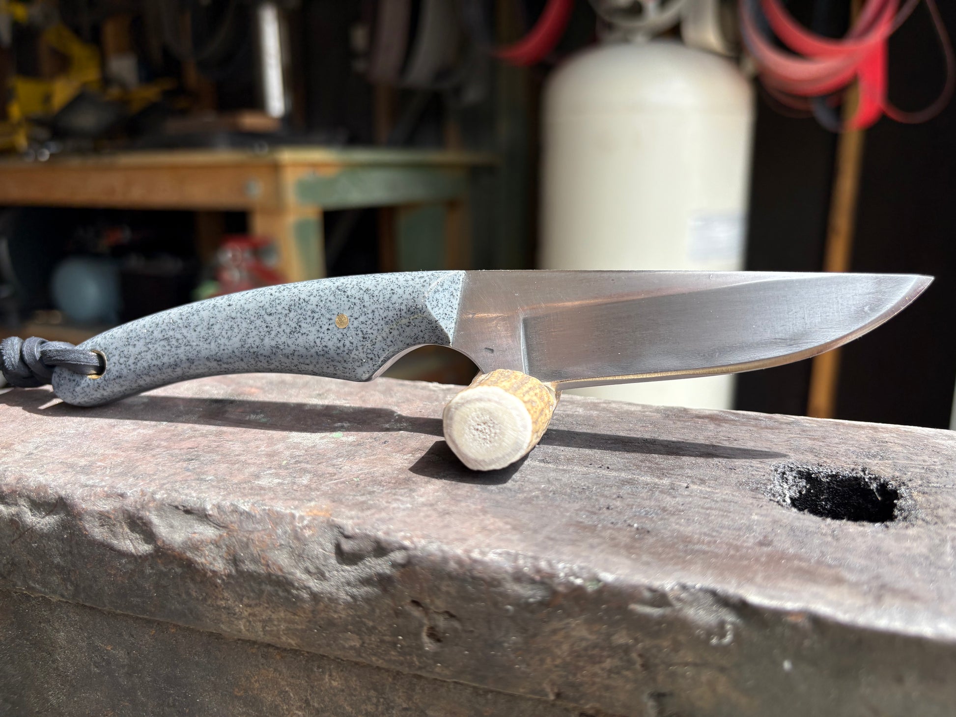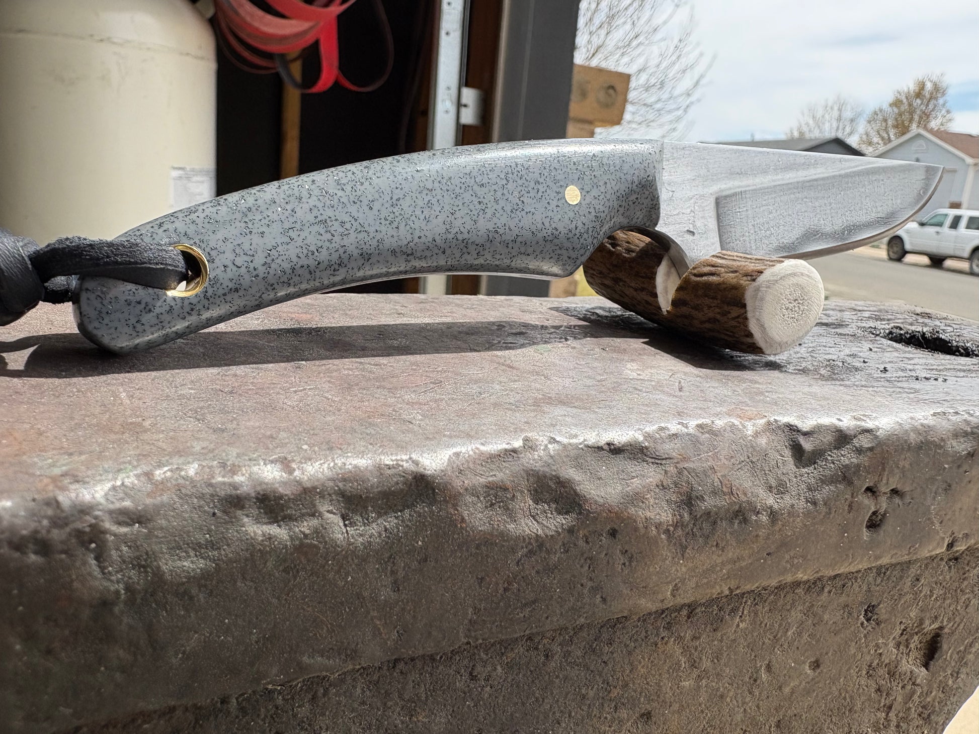 Crafted for both durability and performance, this knife features a clip point blade made from 1095 high carbon steel and a Hamon line. The precision hollow grind ensures a sharp, long-lasting edge, making it ideal for various cutting tasks.